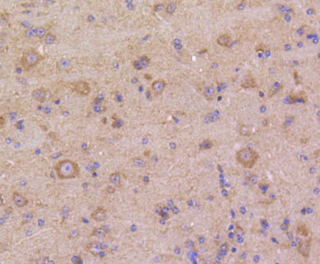 Immunohistochemistry of paraffin-embedded mouse brain using DUSP6 antibody at dilution of 1:100 (40x lens).