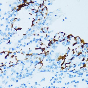 Immunohistochemistry of paraffin-embedded human lung using CTSE antibody at dilution of 1:100 (40x lens).