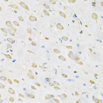 Immunohistochemistry of paraffin-embedded rat brain using TRIM29 Antibody at dilution of 1:100 (40x lens).