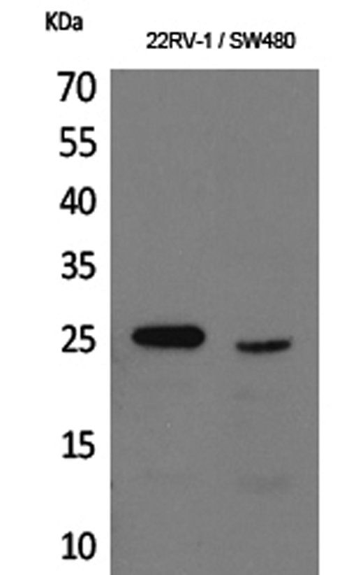 Western Blot analysis of 22RV1, SW480 cells with SSX1 Polyclonal Antibody