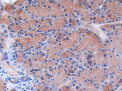 Figure. DAB staining on IHC-P; Samples: Rat Stomach Tissue.)
