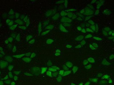 Figure. FITC staining on IHC-P; Samples: Human Hela Cells.)