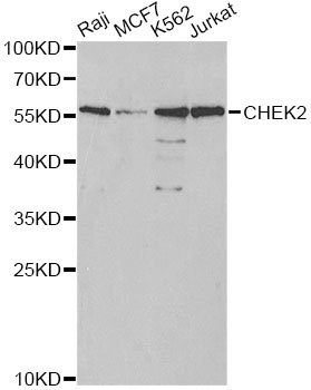 In response to DNA damage and replication blocks, cell cycle progression is halted through the control of critical cell cycle regulators. The protein encoded by this gene is a cell cycle checkpoint regulator and putative tumor suppressor. It contains a forkhead-associated protein interaction domain essential for activation in response to DNA damage and is rapidly phosphorylated in response to replication blocks and DNA damage. When activated, the encoded protein is known to inhibit CDC25C phosphatase, preventing entry into mitosis, and has been shown to stabilize the tumor suppressor protein p53, leading to cell cycle arrest in G1. In addition, this protein interacts with and phosphorylates BRCA1, allowing BRCA1 to restore survival after DNA damage. Mutations in this gene have been linked with Li-Fraumeni syndrome, a highly penetrant familial cancer phenotype usually associated with inherited mutations in TP53. Also, mutations in this gene are thought to confer a predisposition to sarcomas, breast cancer, and brain tumors. This nuclear protein is a member of the CDS1 subfamily of serine/threonine protein kinases. Several transcript variants encoding different isoforms have been found for this gene.