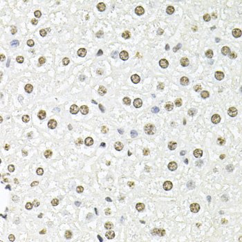 Immunohistochemistry of paraffin-embedded mouse liver using FBL antibody at dilution of 1:100 (40x lens).