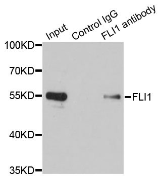 Immunoprecipitation analysis of 200ug extracts of Jurkat cells using 1ug FLI1 antibody. Western blot was performed from the immunoprecipitate using FLI1 antibody at a dilition of 1:1000.