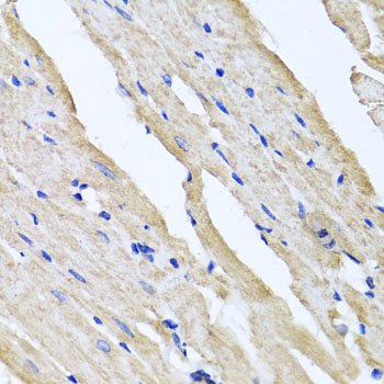Immunohistochemistry of paraffin-embedded mouse heart using RCN2 antibody at dilution of 1:100 (40x lens).