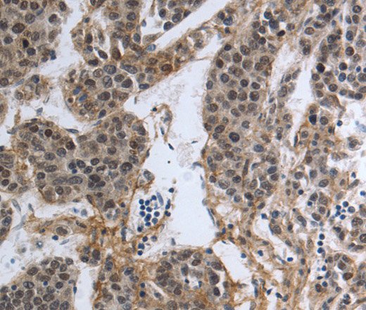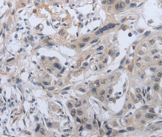 Immunohistochemistry of paraffin-embedded Human lung cancer tissue using PMS2 Polyclonal Antibody at dilution 1:30