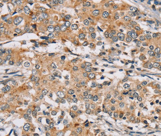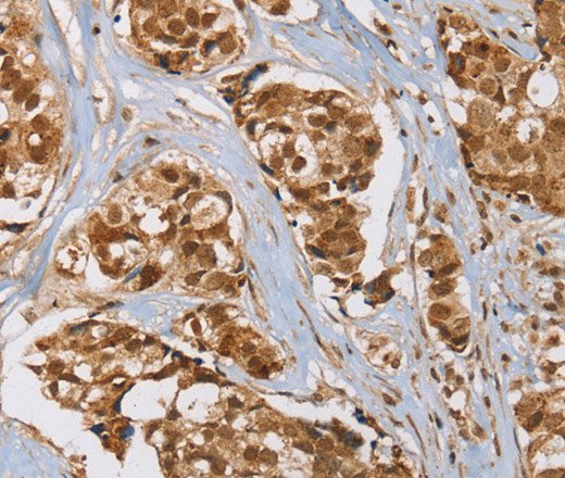 Immunohistochemistry of paraffin-embedded Human breast cancer tissue using RAB24 Polyclonal Antibody at dilution 1:45