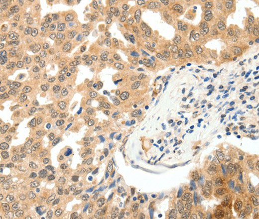 Immunohistochemistry of paraffin-embedded Human ovarian cancer using PAK5 Polyclonal Antibody at dilution of 1:10
