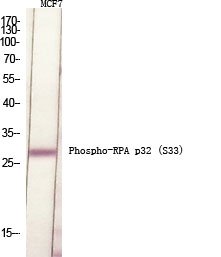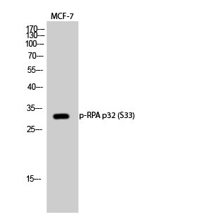 Western Blot (WB) analysis of MCF-7 cells using Phospho-RPA p32 (S33) Polyclonal Antibody.