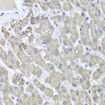 Immunohistochemistry of paraffin-embedded human liver injury using ALKBH4 antibody at dilution of 1:100 (40x lens).
